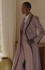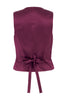 Self covered buttons secure the front, and the back of the waistcoat is made and fully lined in aubergine silk satin.