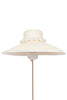 Made from sustainable panama straw that has been hand woven in Ecuador. A statement couture hat with deep brim trimmed in silk cotton and large pearl beads. Featuring a soft elasticated inner ribbon for a comfortable fit.