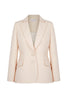 A beautiful tailored suit cut from a stunning, structured, Italian silk cady in a soft peach tone.