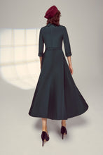 Featuring 3/4 length sleeves with a fixed cuff and a full skirt which dips down at the back, this dress has a centre-back invisible zip for step-in ease, and is fully lined in silk.
