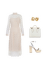 A beautifully cut elegant understated showpiece with a high neck and sheer long sleeves.