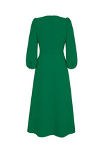 The midi length dress has an invisible zip for step-in ease, and the slim bell sleeves add a subtle drama.
