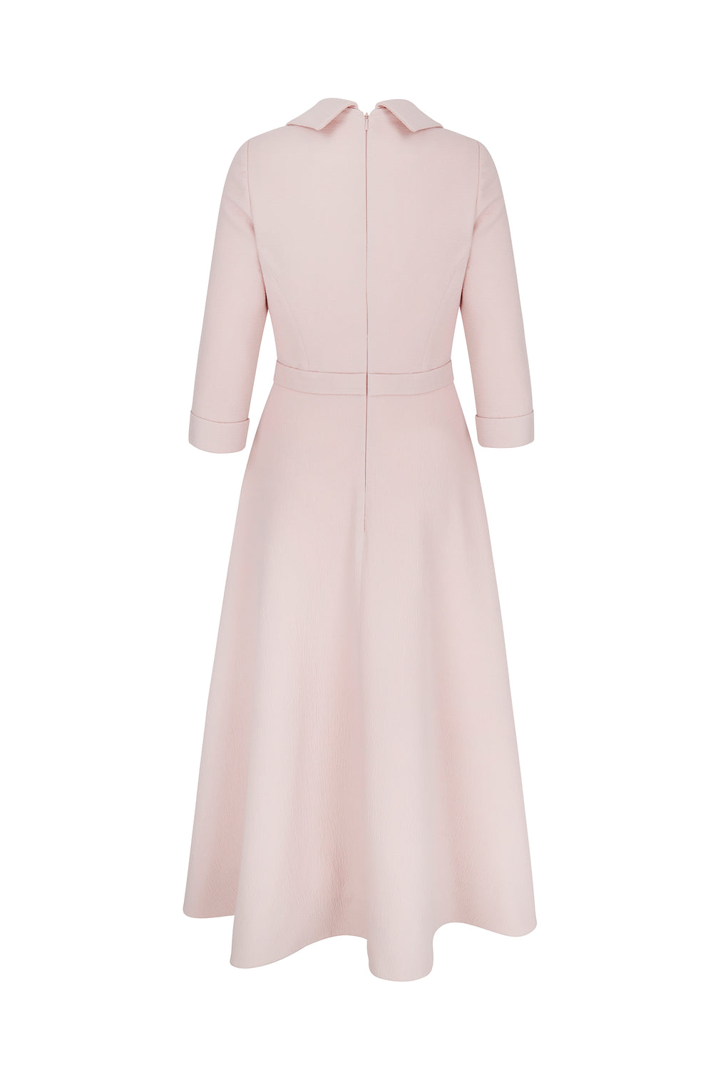 An elegant full skirted dress, the Silk Cowl Neck Riding Dress in Cloqué Dusky Pink is softly tailored from our beautiful Italian virgin wool cloqué...