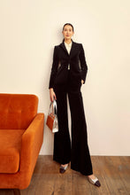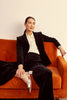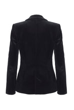 The Brooklyn Jacket is a beautiful black velvet single breasted blazer, cut from a stunning, structured, Italian GOTS certified sustainable organic cotton stretch velvet.