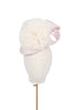 The Ipanema Straw Beret is a sweet pink parasisal straw beret base trimmed with an oversized ivory ostrich pompom and sculptural straw bow.