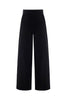 The trousers are full-length with a high waistband, a flattering wide leg, and diagonal side pockets.
