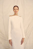 Eden is a sensational full length ivory crepe gown. Made from a premium viscose crepe and fully lined with a stretch silk satin, giving the dress a beautiful weight and drape.