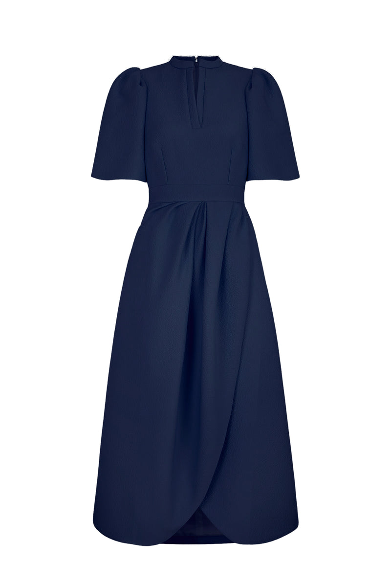 Impeccably styled with the Delphine Dress Navy Cloqué