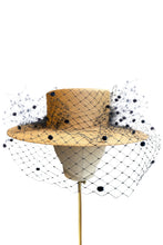 A stunning new millinery style for the season, The Nixi is a beautifully shaped ring top boater with navy spot contrast veiling, expertly crafted by prestigious British milliner Jane Taylor.