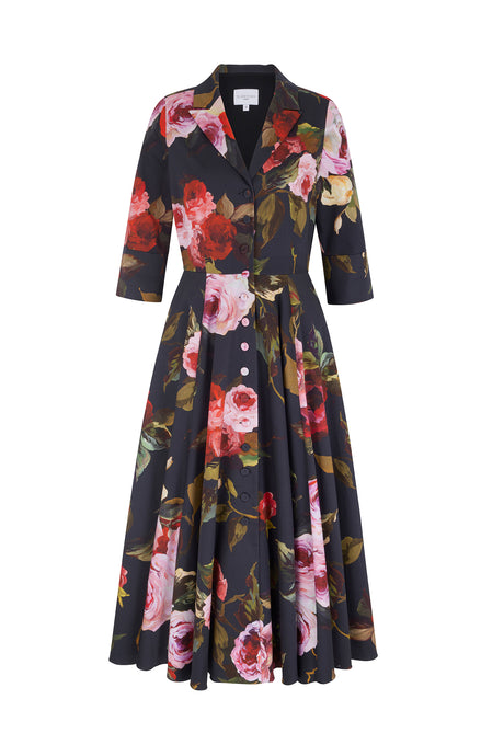 Veronique Full Length Silk Tea Dress Clover Floral x Rachel Levy