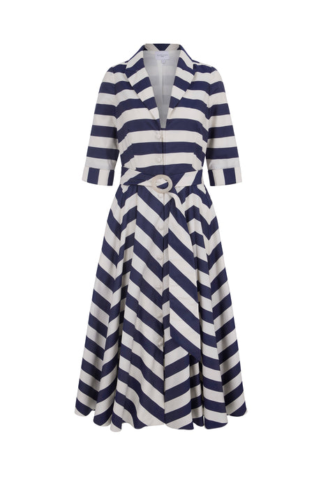 Priscilla 25 Striped Summer Shirt Dress White and Blue