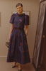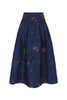 Clara is a beautifully cut high waisted midi skirt, crafted from lightweight, textured floral fil coupè Italian fabric in navy with highlights of rich copper.