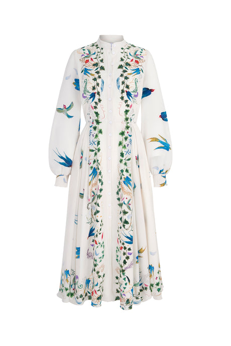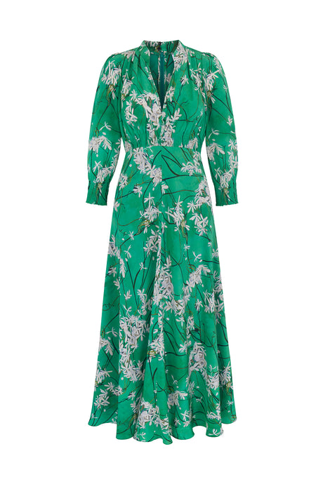 Veronique Full Length Silk Tea Dress Clover Floral x Rachel Levy
