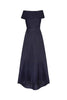 The slightly higher pitched waistline holds a fluid a-line maxi length skirt with seamed back train.
