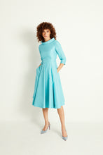 The Silk Gazar Obsession Midi Dress in Sea Foam is a 1950s-inspired, structured cocktail dress, crafted from our signature high quality Italian silk gazar in soft sea foam blue.