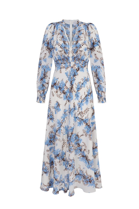 Our quintessentially British luxury silk tea dresses are a signature style of the Suzannah brand. They are inspired by silhouettes from the late 1930's and early 1940's. The pieces are cut with a modern edge and an exacting eye. The dresses are cut on the bias to flatter. Each exclusive printed textile is designed and painted by hand, and then digitally printed on the highest quality Italian silk crepe-de chine and lined from empire through to hem in silk.