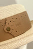 The hat is trimmed with a chic wide leather hand punched band, which is produced without chrome in the tanning process. This style features an elasticated cotton ribbon inside to help secure a comfortable fit.