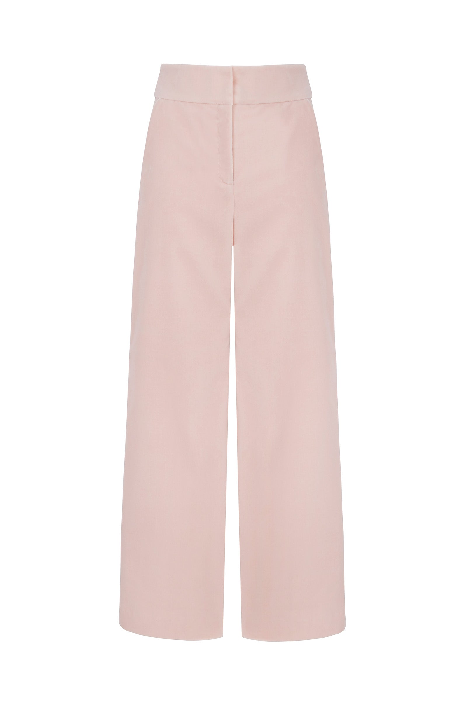 Our Brooklyn Trousers are beautifully tailored and cut from a stunning GOTS certified, sustainable organic blush cotton velvet.