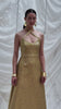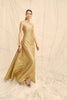 Sensational full length gown, constructed in a beautiful exclusive Italian gold tweed and fully lined in silk satin.