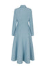 The Alabama Coat Dress is a stunning formal mid length coat dress, tailored from luxury Italian lurex ribbon tweed cloth in Heritage Blue . The colour itself is a unique smokey blue tone which has warmth and depth. The delicate tones within the weave of this coat make it the most desirable occasion outfit. There is a delicate, very gentle metallic silver hint and a matt and shine effect created within the weaving of the textiles.