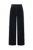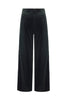 The trousers are full-length with a high waistband, a flattering wide leg, and diagonal side pockets.
