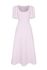 With a flattering curved square cut neckline, fitted bodice and fluid-a line midi length skirt part with integral train detail, this dress is perfect for weddings and special events.