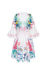 Suzannah worked together with the fine artist illustrator Susannah Garrod, who painted Suzannah’s personal photographic inspiration. The artwork was painted with the illustrators coveted fine handwork and then worked into a textile design by Suzannah and her textile design team to create this absolutely beautiful white kaftan dress.