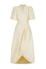 Made in London, The Delphine has a timeless silhouette that creates impact with immaculate precision cutting and modern proportions. With a beautiful tulip shaped wrap skirt that is fixed at the waist, the side and back skirt fall at ankle length. Pockets feature in the side seams of the skirt, and the fitted tailored bodice is finished with a round neck and subtle V, with softly sculpted sleeves that are cut to finish above the elbow.