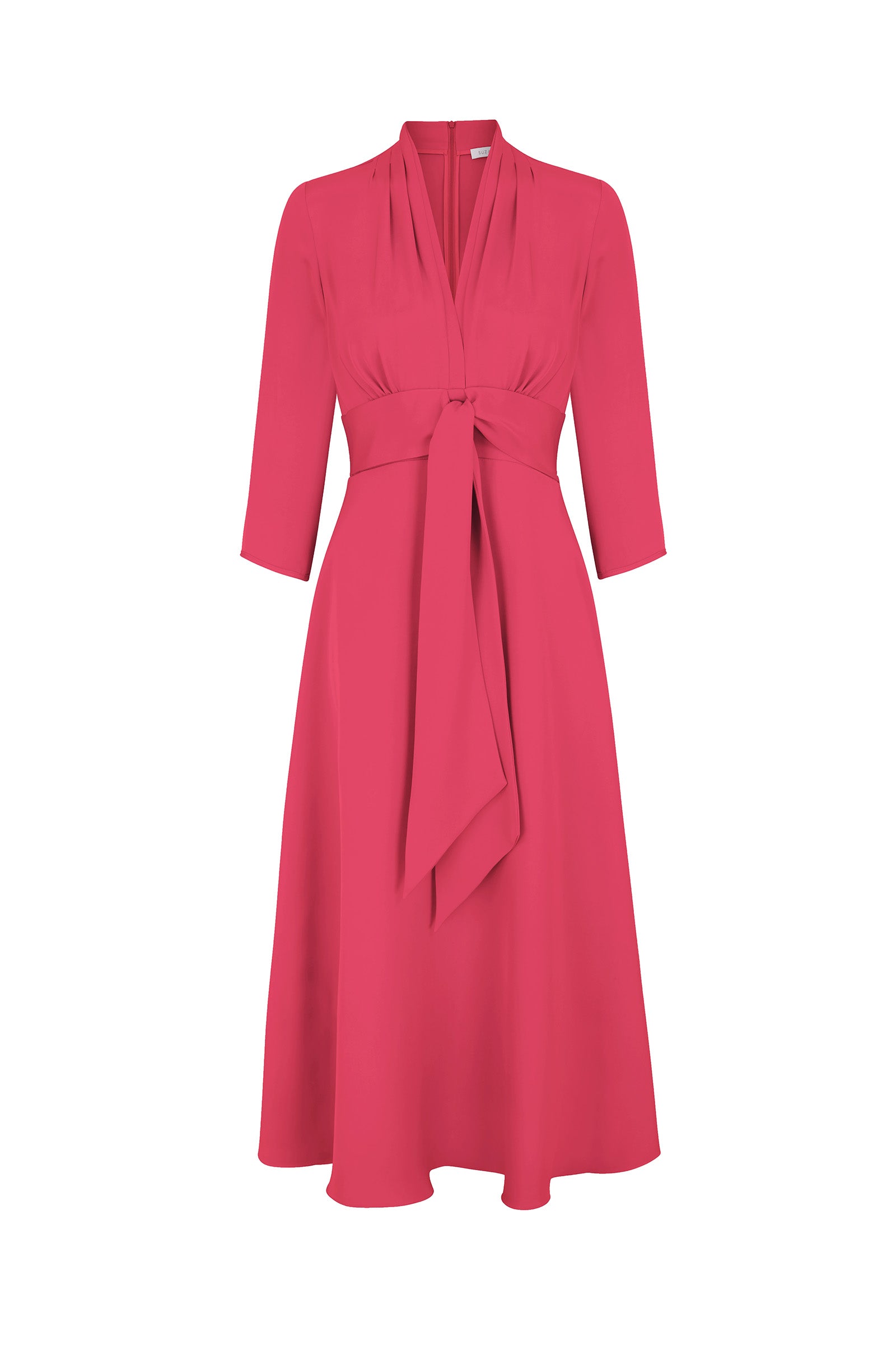 Made from our signature, fluid Italian silk crepe in a stunning Raspberry shade. With its narrow, elongated v-neckline, this dress elegantly frames the face while remaining demure enough for every occasion.