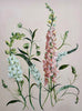 The Floral Larkspur placement design was developed from an original artwork by British botanical artist Nay Bellamy, created in collaboration with Suzannah. Inspiration began with Suzannah’s visit to the Chelsea Flower Show last summer, where she fell in love with lupine and larkspur, and was later reignited when she discovered a striking still setting of the same flowers on Nay Bellamy’s Instagram. The two creatives worked together to transform the moment into a painting designed to translate beautifully onto textiles.