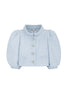 The cute jacket has a Jackie O style collar and playful sleeves. The front is secured with beautiful floral jewel feature buttons.