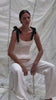 The Hera Top is a beautiful boned corset-style top with beautiful black velvet bow detailing on the shoulders and a gentle peplum waist.