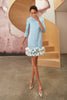 The silhouette is inspired by the late 1950s and early 60s, two hoops of hand-cut petals adorn the hemline. Beautifully cut to achieve a sensational skimming fit.