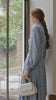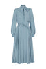 The Sidney is our classic button through silk blouse dress with detachable pussy bow tie which has been reimagined for this season in a beautiful Itailan cloth in a stunning Heritage Blue. Which is a smokey rich soft blue. The dress is lined in silk, and is soft , comfortable and effortless.