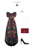 Crafted from softly structured Italian silk gazar in a deep rich olive green, this gown showcases Nay's gorgeous painted floral motifs, which cascade down the skirt.