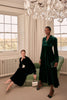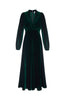 Cut from soft, fluid Italian velvet in a rich forest green, the dress has full length sleeves with delicate binding on the inside cuff and secured with a discreet button. The dress features a shirred elasticated empire seam and bias cut silhouette, falling to a midi length.